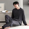 New Autumn Winter Gray Striped Pajamas Set for Men's Warm Soft Nightwear Men's Pajamas Long Sleeves 2 Pieces Set Sleepwear