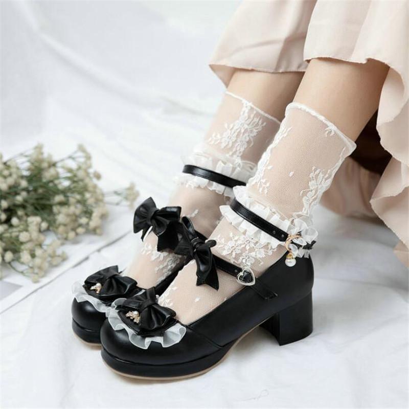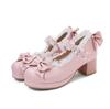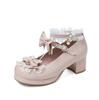 Girls' Shoes Ladies Heels Platform Cute Bow Lace Princess Mary Jane Lolita Shoes Party High Heel Buckle Women Pumps Pink 30-43