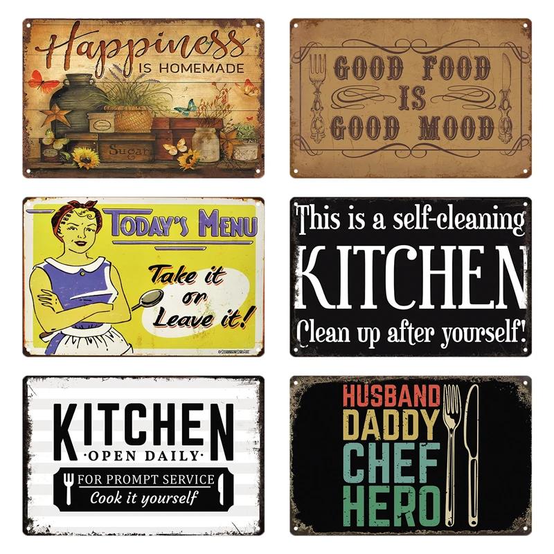 Retro Plåtskylt Köksregler Mat Järnmålning Väggkonst Metall Vintage Plakett Metallaffischer för Hus Hem Matsal Dekor