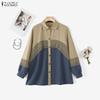 ZANZEA Women Turn Down Collar Casual 3/4 Sleeve Loose Blouse