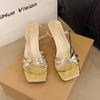 Högklackade damsandaler sommar 2025 nya franska temperament tunna klackar älv fyrkantig tå mode mångsidiga damsandaler