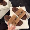 Retro versatile open-toed lamb wool slippers for women's outerwear 2025 autumn and winter new flat-bottomed casual one-word cotton mop