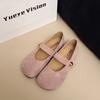 Franska retro lågskurna damskor 2025 vår mild älvvind mjuk sula gul platt Mary Jane damskor