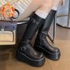 Mode retro brittisk stil tjock klack platåstövlar dam 2025 höst och vinter nya enkla och mångsidiga höjdhöjande modekängor