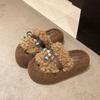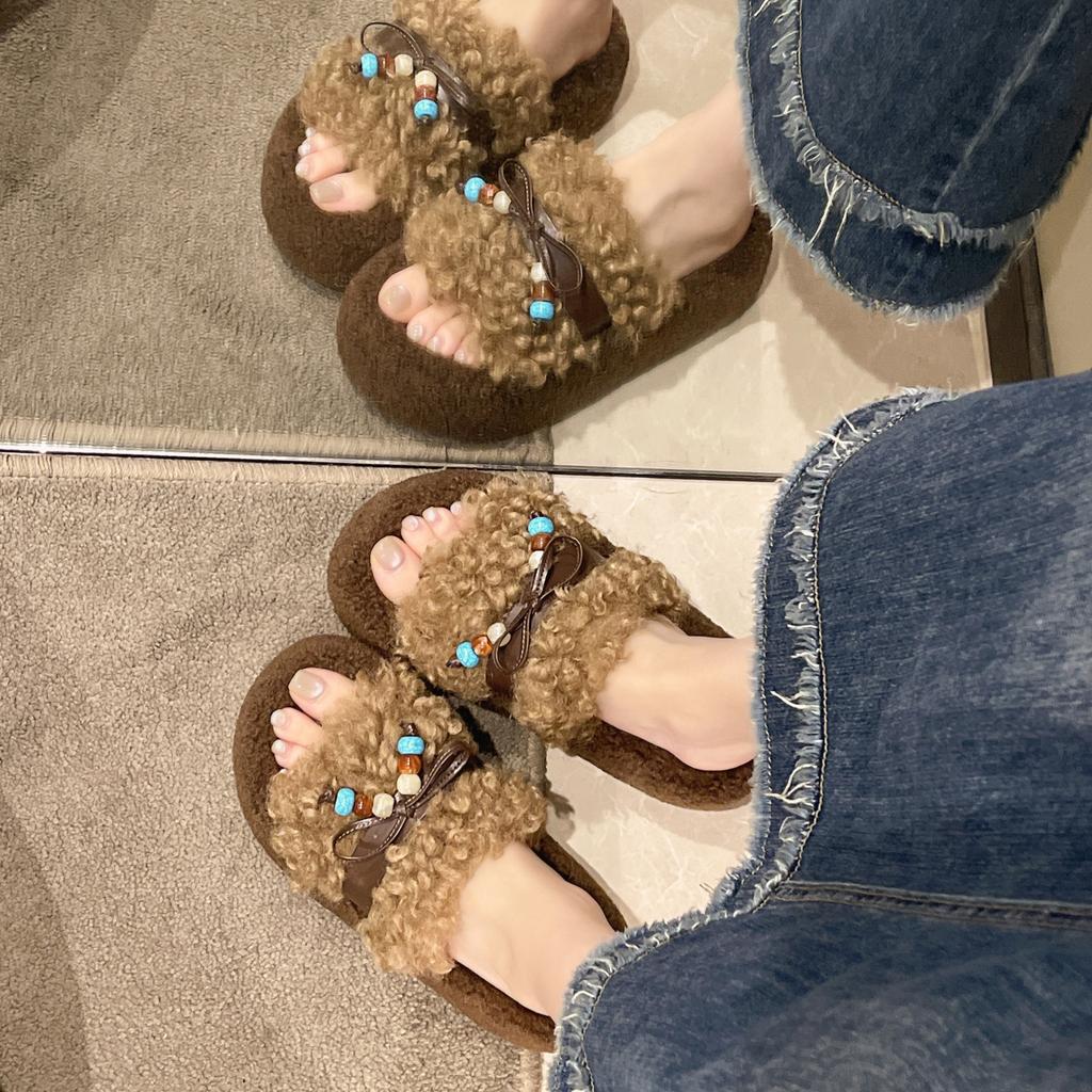 Retro thick-bottomed premium fluffy slippers for women's outer wear 2025 new autumn super-hot fluffy explosive cotton slippers