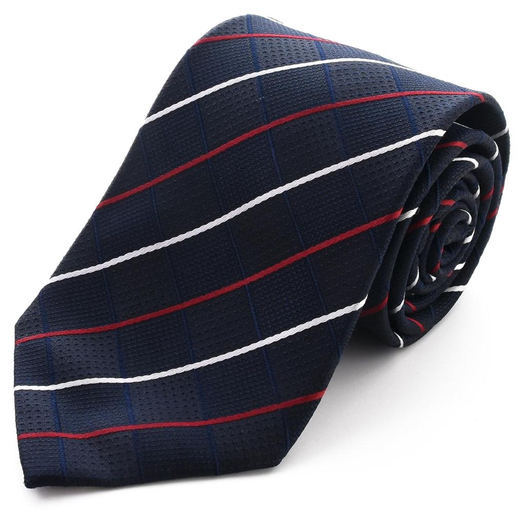 Michiko London Brand Silk Jacquard Weave with Plaid and Embroidery D Necktie, 100% (D Pattern Navy)