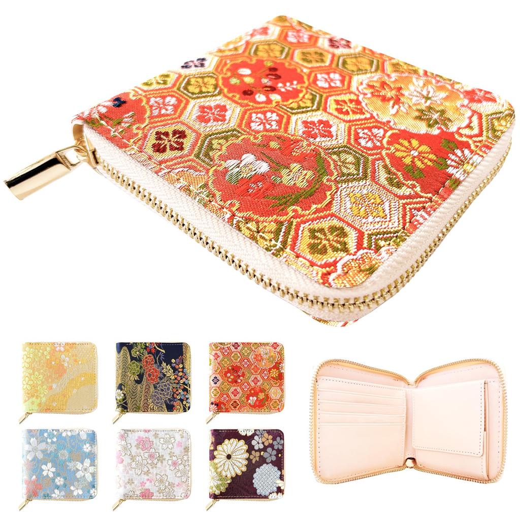 round round Japanese mini Ming and flower snowflake design Nishijin-ori (brocade) wallet, zipper, bifold, wallet, women's, style, compact, wallet,