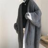 Kofta Dam Höst Vinter Twist Stickad Jacka Retro Tjock Lös Lång Tröja för Damer Enkla Damkläder