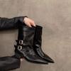Pointed high-heeled brown small short boots women's shoes new spring and autumn single boots retro belt buckle medium tube pants tube boots