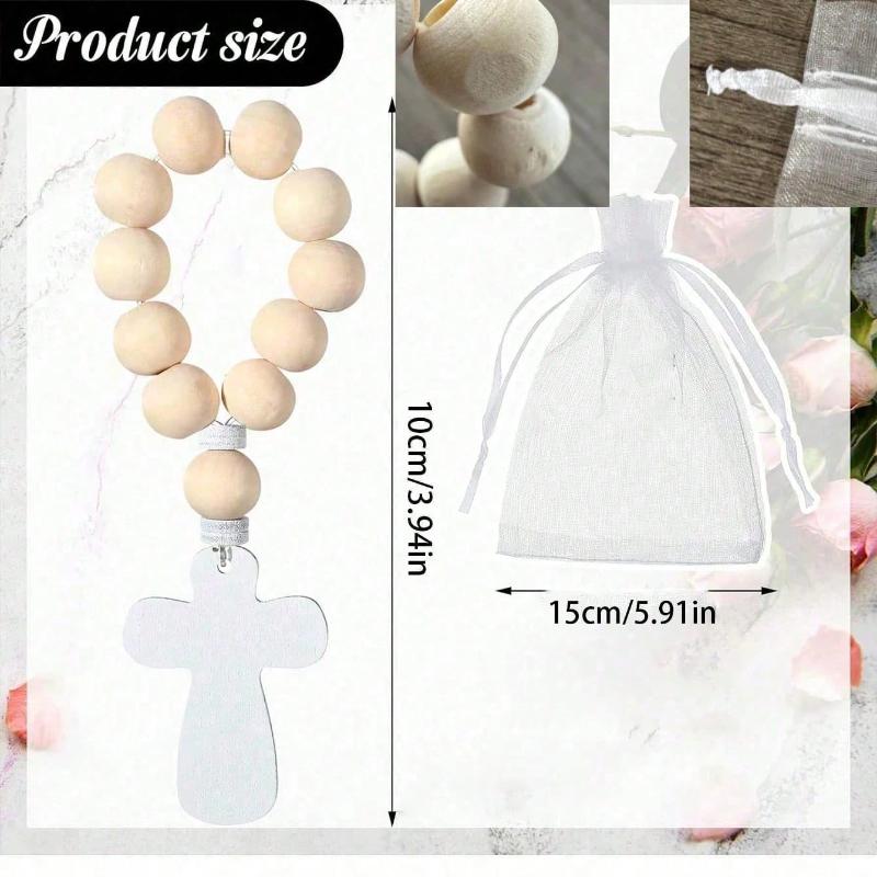Rosary Loose Wooden Catholic Prayer Rosary With Cross Wooden Cross Pendant White Mesh Bag Used For Baptism First Communion Confirmation