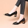 Spetsig temperament grund mun medelhög klack enkla skor damskor högklackade damskor mångsidiga grund mun tjock klack skor