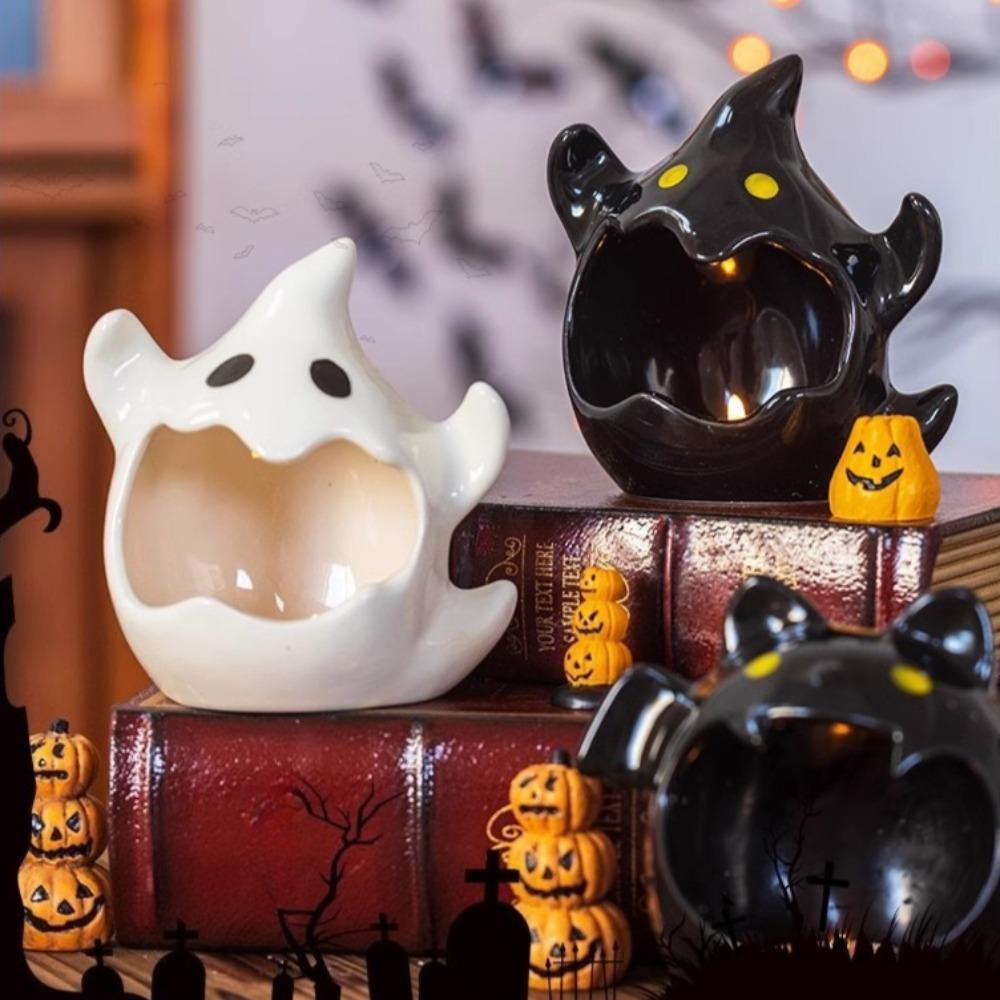 Kreativ Keramisk Atmosfär Ljusstake Halloween Dekoration Söt Spöke Ljusstake Spöke Pumpa Lykta Ornament