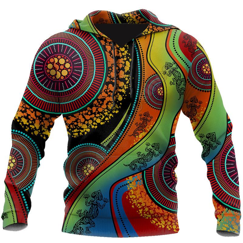 Höst Färgglada Etniska Mönster 3D-tryckta Hoodies Trendiga Lediga Sport Långärmade Herr Huvtröjor