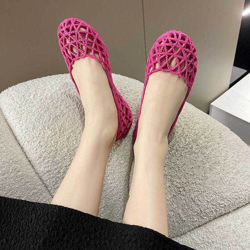 Fashion 2025 new beach sandals for women's summer fashion hollow flat toe anti slip soft bottom breathable jelly plastic Flat shoes