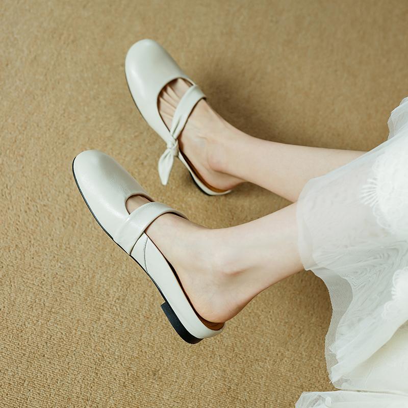 Mode 2025 NY Sommar Kvinnor Mules Äkta Läder Damskor Rund Tå Grov Klack Täckt Tå Höjdökande Sandaler Moderna Tofflor