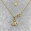 Kejsarinnan Dowagers guldpläterade mässingshalsband med strassbrosch och Saturnus-hänge - Europeisk och amerikansk Hong Kong-stil för kvinnor