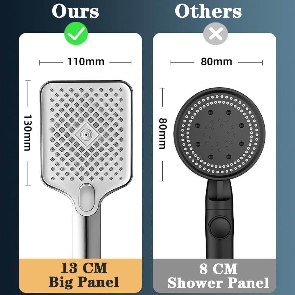 13 CM Stor Panel Högt Flöde Duschhuvud Silver 3 Lägen Högtrycksspraymunstycke Massage Regndusch Badrumstillbehör