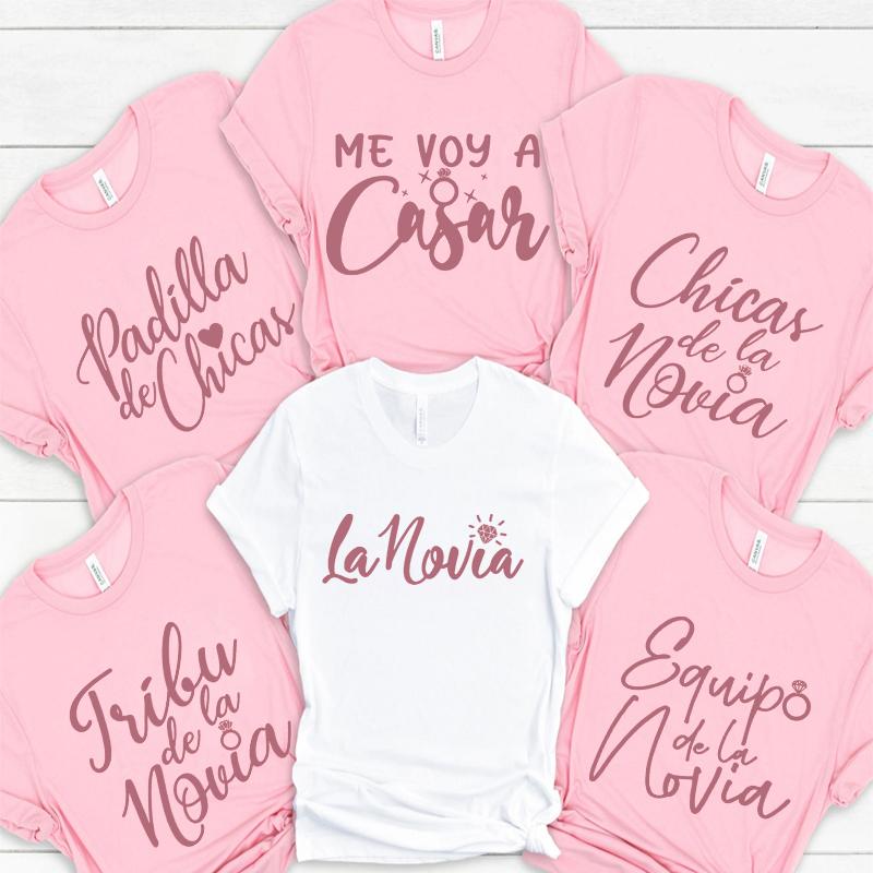 Team Bride Squad Tribe Toppar Brudtärna T-shirt Blivande Brud Toppar Bröllops-T-shirt Spanska Tjejer Möhippa T-shirt