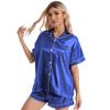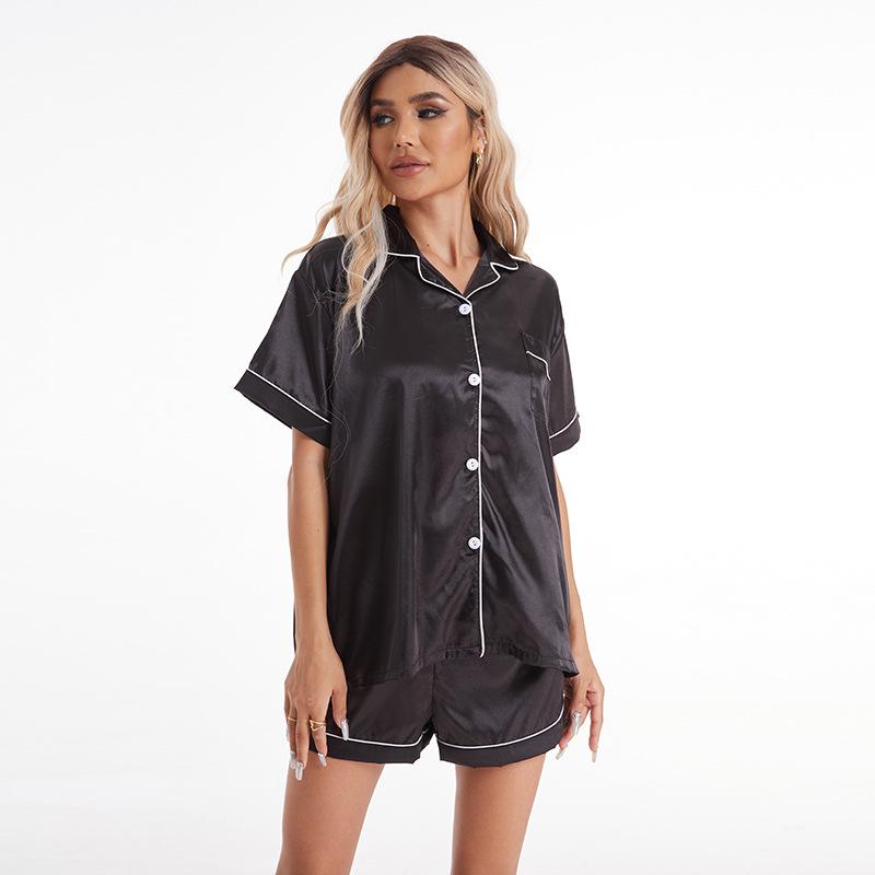 Unna dig elegans och komfort med detta lyxiga pyjamasset, tillverkat av premium siden för att erbjuda en lugnande och sofistikerad sömnupplevelse.. Setet har en chic slagdesign och 3/4-ärmar, och kombinerar europeiska och amerikanska stilelement för en tidlös look.. Detta pyjamasset, som finns i en elegant svart färg och plusstorlekar, ger både stil och komfort för en perfekt nattsömn.
