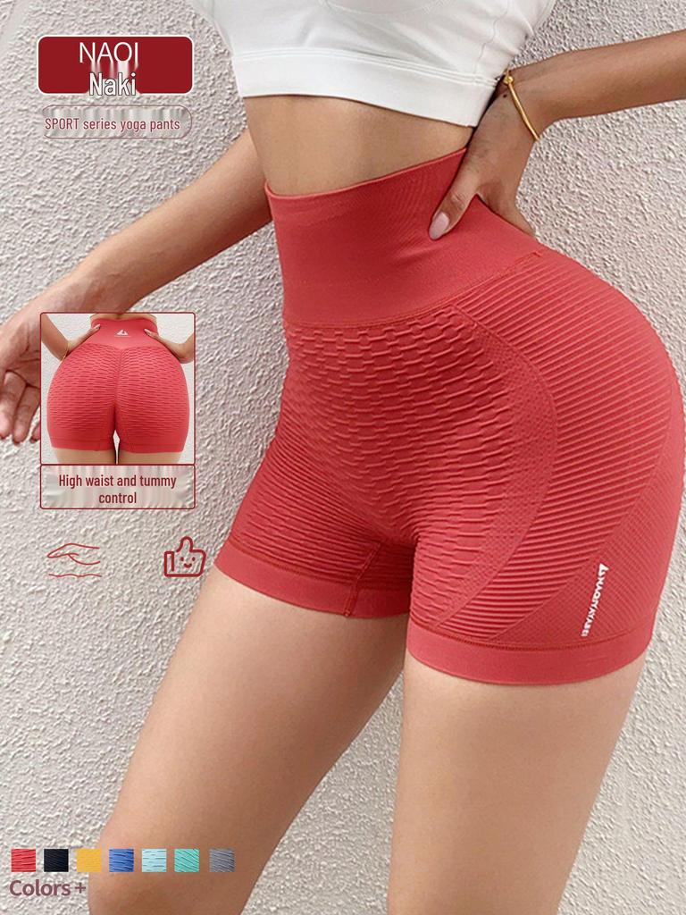 Sömlösa Höga Midje-Fiskbensmönstrade Fitnessshorts för Kvinnor
