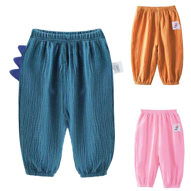 These pants are designed specifically for children to ensure comfort and protection during the summer months. Made from breathable cotton material, they offer lightweight wear that's perfect for warm weather. The pants feature a special design to keep mosquitoes at bay, providing an added layer of defense for your child's outdoor adventures. Ideal for playtime or casual outings, they combine practicality with a soft, gentle feel against the skin.