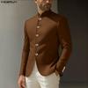 INCERUN Men Lapel Long Sleeve Double Breasted Casual Ribbed Knitted Jackets Coats