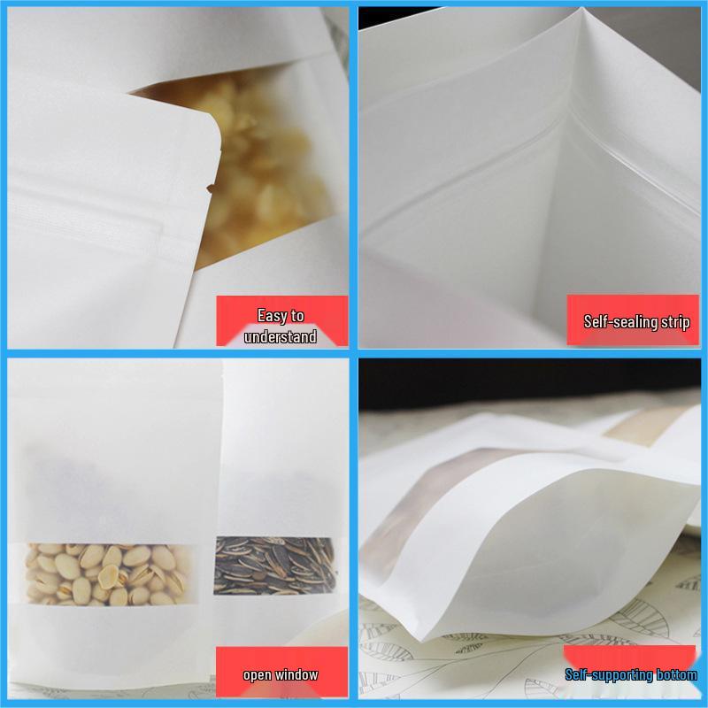White Kraft Self-Sealing Stand-Up Pouch with Frosted Window for Nuts and Dried Fruits