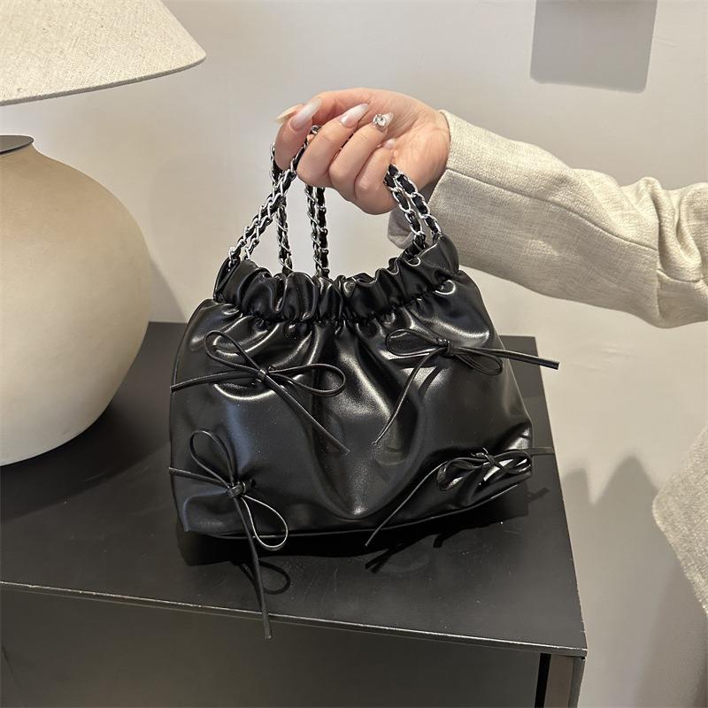 Niche pleated design handbag women's spring and summer new simple versatile bucket bag fashion chain messenger bag