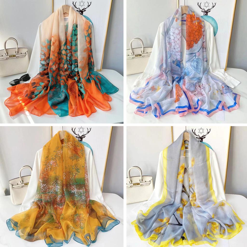 Luxury Silk Scarf Hijab Women Soft Warm Pashmina Neck Beach Stoles Head Scarves Echarpe Shawl Large Wrap Echarpe Bandana