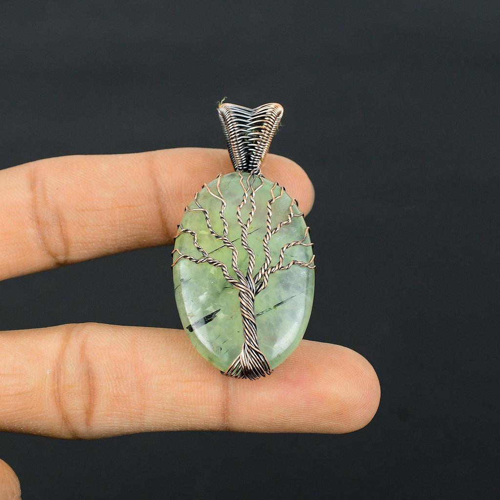 Prehnite Jewelry, 999 Copper Wire Wrapped Pendant Handmade Gemstone Jewelry, Gifts For Wife Brand New Pendant