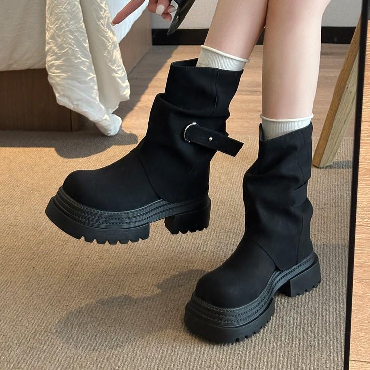Internet celebrity popular pants boots women 2025 new thin Martin boots retro fashion thick heel fried street Maillard boots