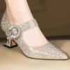 New rhinestone word with thick heel single shoes women's high heels 2025 spring and autumn fashion medium heel wedding shoes shallow mouth women's sh