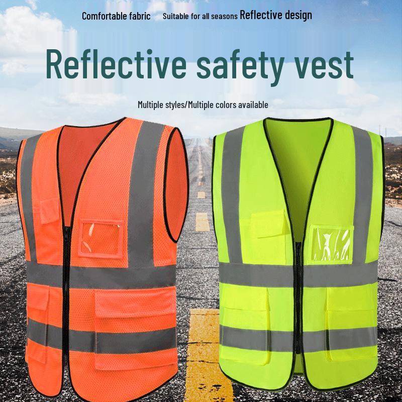 Reflekterande säkerhetsväst för trafik, byggarbetsplatser och trädgårdsarbete - Fluorescerande grön, Anpassningsbar.
