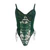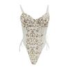 Damers spetsbroderi mesh rygglös body med dragsko i midjan