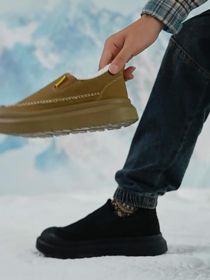 Herr Trendiga Stor Storlek Mjuk Sula Förhöjda Varma Vinterpäls Snökängor Vadderade Fodrade Ankelkängor Halkfria Vandring Casual Sport Loafers