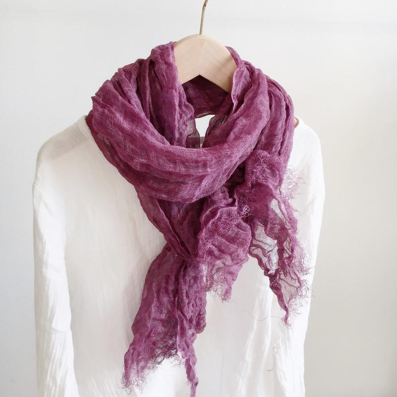 Vintage Wrinkled Linen Scarf Women Spring/Summer Breathable Shawls Sun Protection Long Scarf 60x185cm