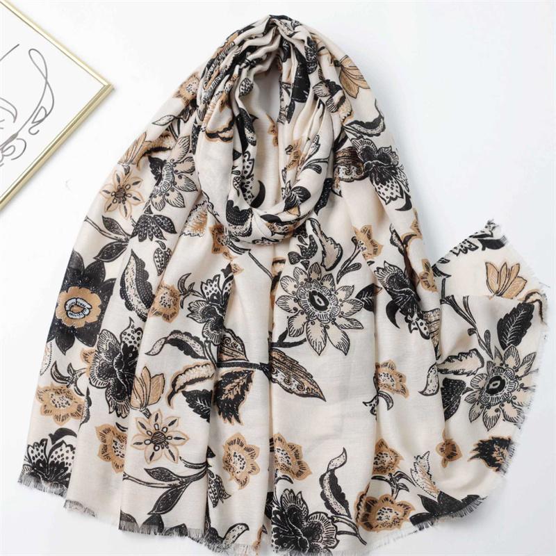 Winter Thick Viscose Scarf Vintage Floral Fringe Cotton Shawls And Wraps Pashmina Stole Bufandas Muslim Hijab Sjaal 180*90Cm