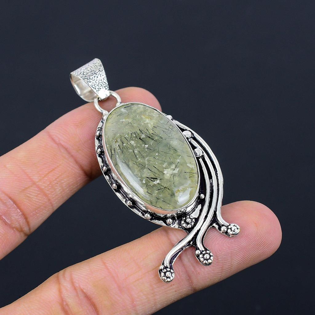Natural Moss Moss Prehnite Gemstone Pendant 925 Sterling Silver For Women