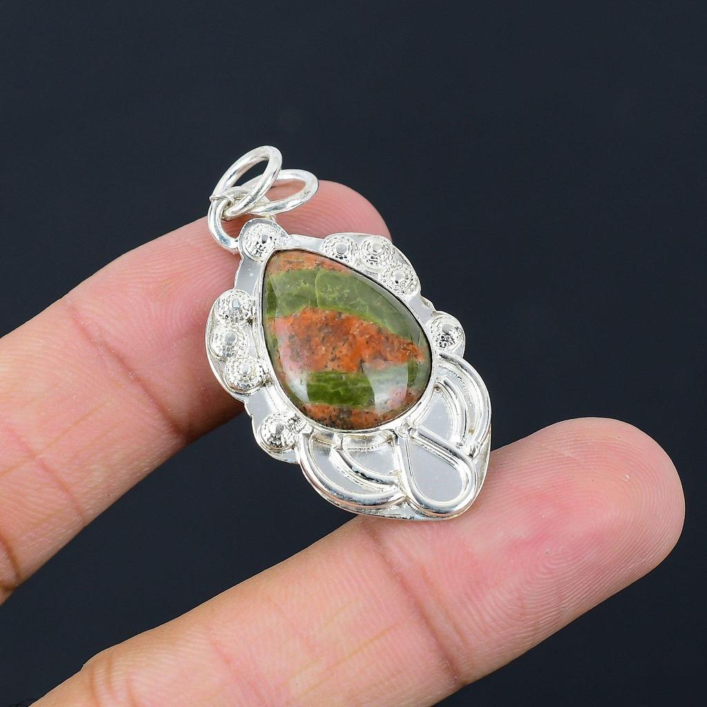 Pear Unakite Stone 925 Silver Daughter Heart Chakra Anniversary Pendant Jewelry