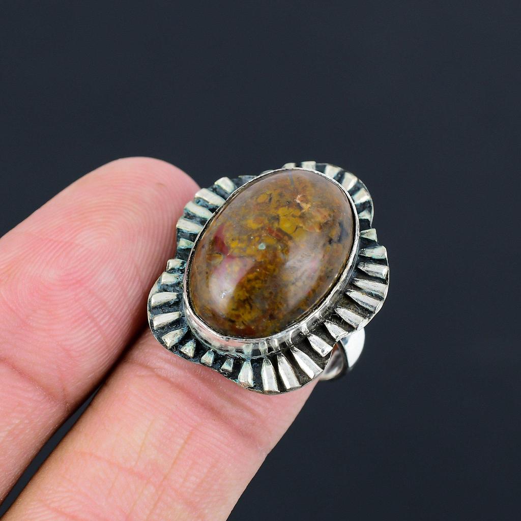 Friendship Day Deal Sterling Silver Fruit Jasper Stone Solitaire New Ring Size 9