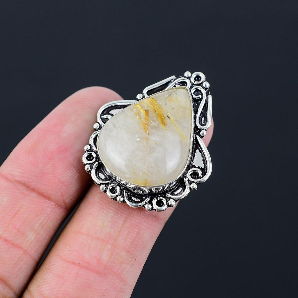 Easter Sale 925 Silver Natural Golden Rutile Solitaire Wedding New Ring Size 7.5
