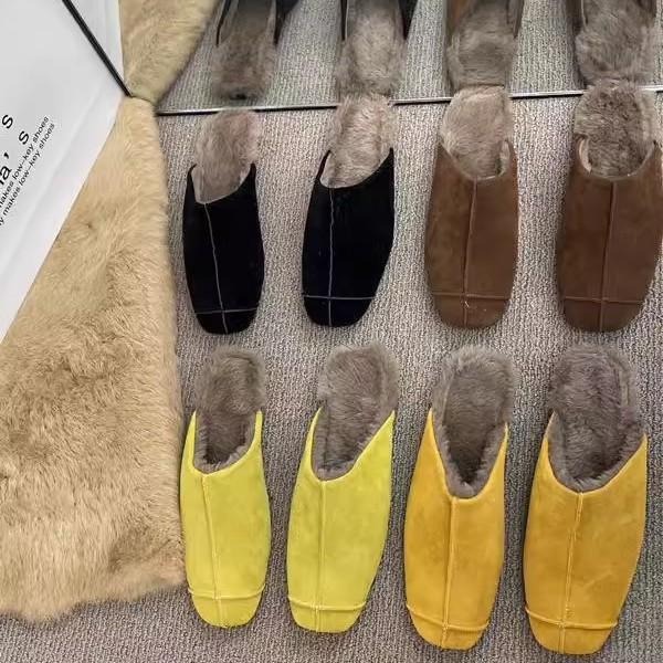 Premium Hairy Square Head Deep Mouth Suede Lazy Muller Shoes Plush Warm Flat Bottom Baotou Half Slippers Women's Outer Wear
