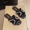 Små doftande vind svala tofflor kvinnor bär 2025 sommar nya älvvind pärla mode platt botten ett ord tofflor kvinnor tidvatten