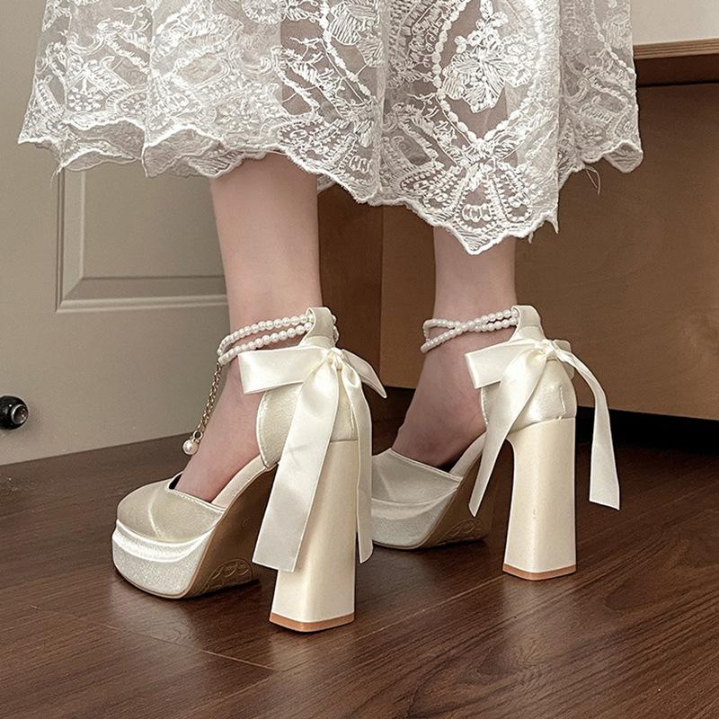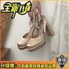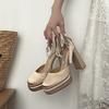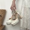 Båge temperament högklackar dam 2025 vår ny bär vattentät bord mode fransk superhög klack sandaler tidvatten
