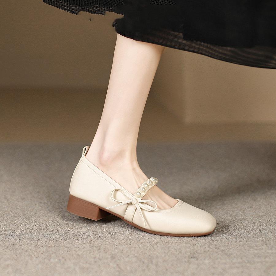Skor dam 2025 nya franska plattbottnade enkla skor dam grunda Mary Jane små läderskor sommar vår och höst kvällsskor