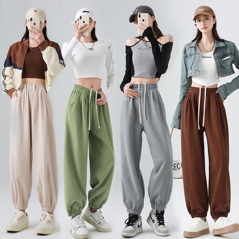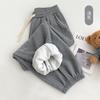 Gray corset sweatpants women's autumn and winter fleece thickened wide-leg pants new high-waisted loose bloomers sweatpants