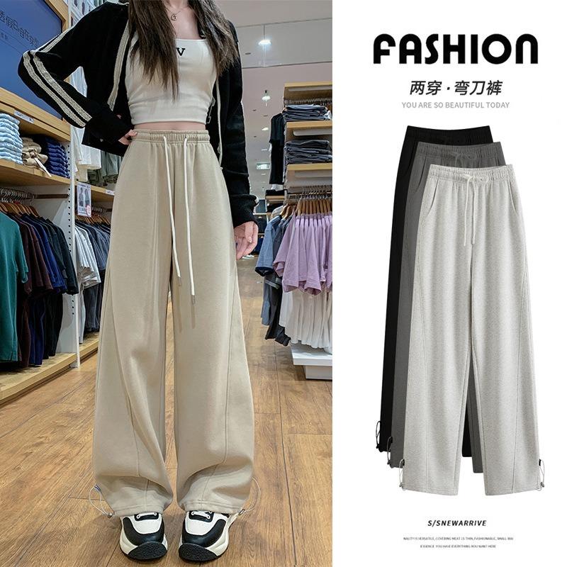 Fleece new straight sickle pants loose casual pants sports banana wide-leg pants women's commuter versatile sweatpants