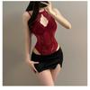 Sexy sexy underwear pure lace neck sling vest Spice girl slim fit uniform suit qqny