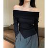 Autumn retro one-word shoulder pullover shows thin split irregular new thin casual knitted sweater top women