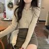 Lapel long-sleeved knitted bottoming shirt spring and autumn new top long-sleeved women's sweater tide